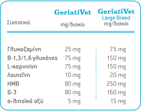 Συμπλήρωμα διατροφής σκύλου, από την VetExpert, με συστατικά τα οποία συμβάλλουν στη προστασία και στην ελαστικότητα των αρθρώσεων. Βοηθάει στην βελτίωση της κινητικότητας και στην μείωση της αίσθησης του πόνου σε περιπτώσεις κινητικών προβλημάτων ή αυξημένης πιθανότητας εμφάνισής τους. Είναι κατάλληλο για ηλικιωμένους σκύλους. Ενδείκνυται για μεγαλόσωμες φυλές, δηλαδή για σκύλους που το βάρος τους μετά την ενηλικίωσή τους είναι από 25 κιλά και πάνω.